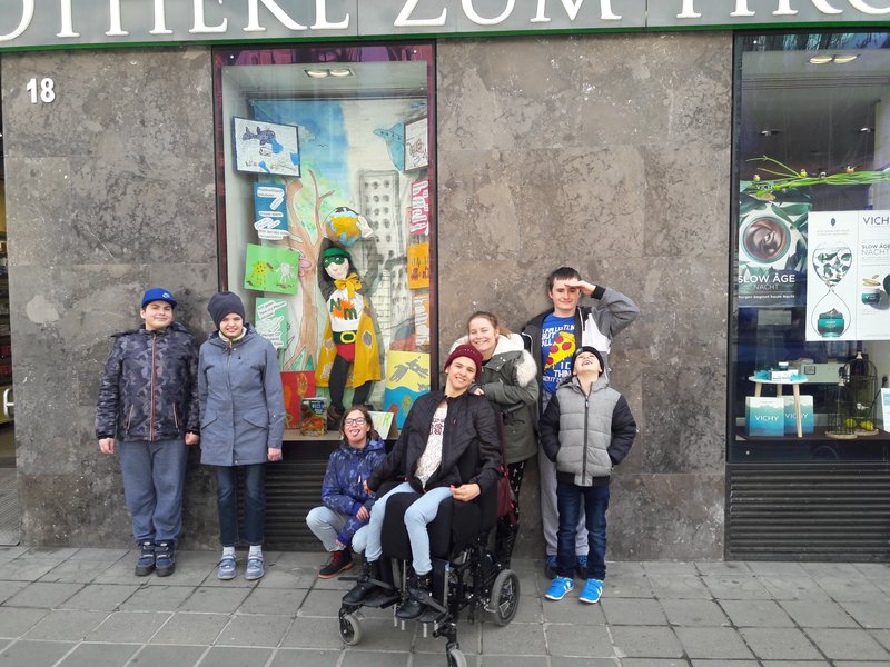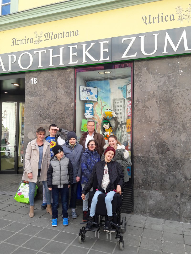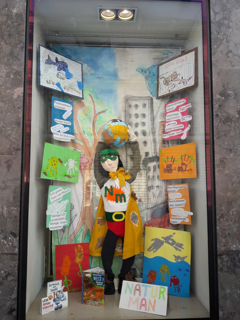 Umweltprobleme gehen uns alle an, deshalb wollen wir davor nicht die Augen verschließen. Oft ist es leichter wegzuschauen. Vielleicht gelingt es uns durch unser Schaufenster, dass Menschen hinschauen. Im Schaufenster der Apotheke zum Tiroler Adler, in der Museumstraße in Innsbruck, dürfen wir ausstellen. Das finden wir passend, denn wenn es einem Menschen nicht gut geht, findet er Hilfe in der Apotheke. Der Welt geht es leider auch nicht gut. Eine Apotheke dafür gibt es nicht, aber wir zeigen, wie wir alle zu Umwelt-Helden werden können!- Projektleitung: