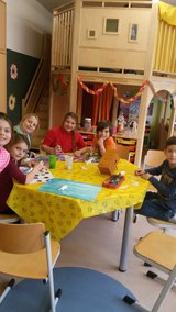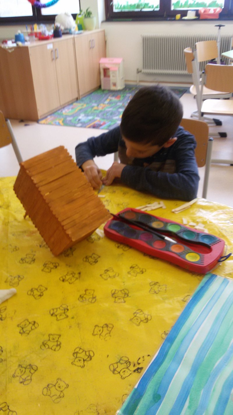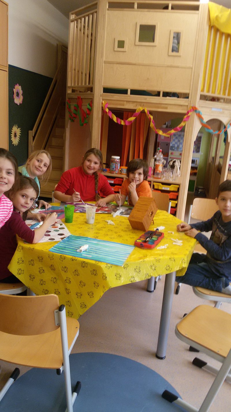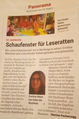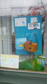 Ich besuche jeden Montag die Nami als Jahresprojekt. Ich machte den Vorschlag eines Lese-Schaufensters und die Kinder waren gleich dabei. Ich las ihnen zuerst das Buch vor, immer wenn es spannend wurde, hörte ich auf. Ich nahm das Buch mit nach Hause und eine Woche später wurde ich schon sehnsüchtig erwartet. Dann gings ans Ideen sammeln fürs Schaufenster. Es wurde gefaltet, gezeichnet, geflochten, geklebt und das U-Boot gebastelt. Und das Ergebnis kann sich sehen lassen. Kinder sind sehr kreativ.- Projektleitung: