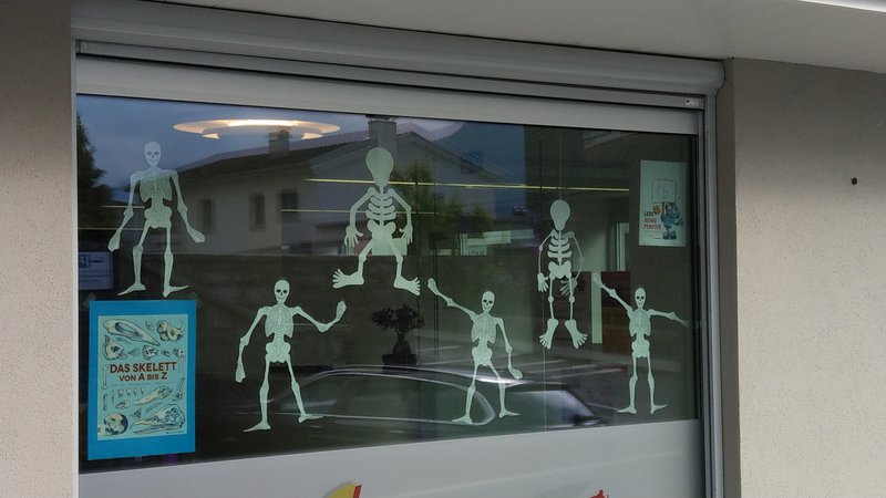 Die Kinder haben in Gruppenarbeit Skelette gebastelt. Die einzelnen Teile wurden ausgeschnitten und "zusammengebaut ".- Projektleitung: