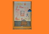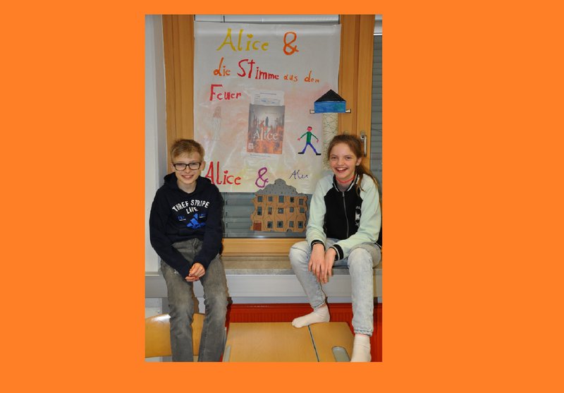 Das Duo hat sich im Rahmen ihrer ELA-Arbeit (Freiarbeit) intensiv mit dem Buch "Alice - Stimmen aus dem Feuer" beschäftigt. Das Leseschaufenster wurde in Eigenregie gestaltet.