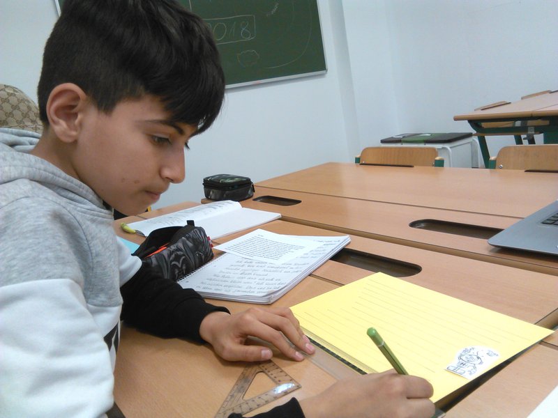 DaZ Jugendgruppe von Mutig voneinander lernen. 5 Jugendliche zwischen 12 und 15 Jahren, die seit 1 bis 3 Jahren Deutsch lernen. Qais und Hussein haben die Texte über Fußballmatches in Afghanistan und in Dubai geschrieben, Olga und Farwa, die Texte über ihre Beziehung zu ihren Omas. Harsin hat sich aktiv an der Gestaltung des Schaufensters beteiligt.