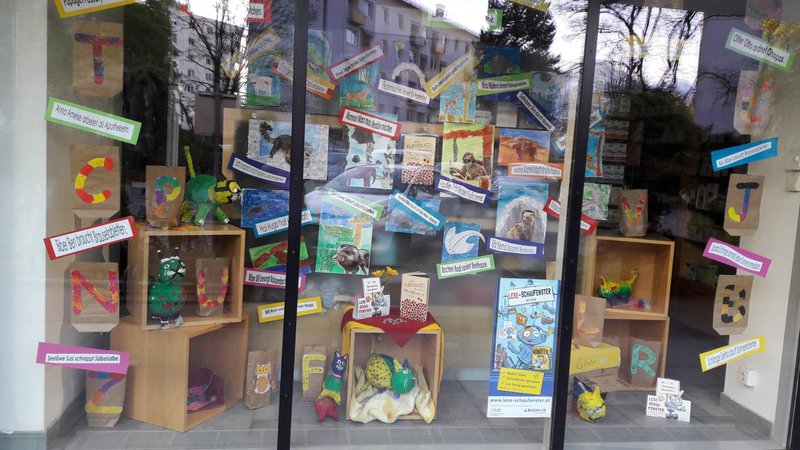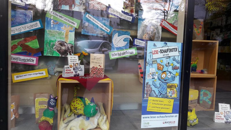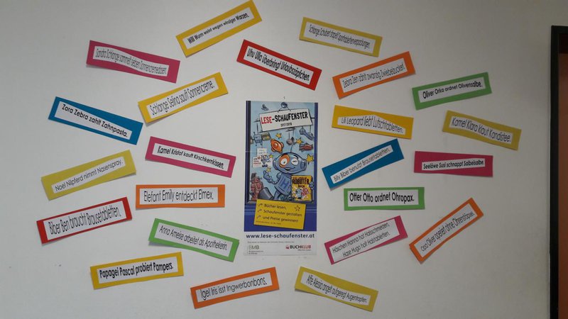 Rezept für ein gelungenes ABC-Darium: Man nehme unzählige motivierte SchülerInnen der 3e- u. 4b-Klasse, eine große Portion Einfallsreichtum, zwei Prisen Humor, kindliche Neugierde, 26 Buchstaben des Alphabets, eine Hand voll Fantasietiere u. 1 kg Medikamentenbeipackzettel, mische aus diesem großen Haufen bunter Ideen die Besten zusammen u. teile sie auf viele kleine Schaufensterportionen auf. „Schau!“, ruft die Schaufensteräskulapnatter. „Hier gibt es viele lustige Sprüche in der Auslage, von Kindern ausgedacht u. selbst Gebasteltes. Ist das nicht großartig?“ Die SchülerInnen haben sich in einem dreimonatigen Arbeitsprozess mit dem Buch auseinandergesetzt. In verschiedenen Arbeitsschritten haben sie Rätsel gelöst, zum ABC neue Tierarten „entdeckt“, Beipackzettel kreativ verarbeitet, Katzen gebastelt etc. Die Kinder waren dabei gar nicht mehr zu bremsen u. was am Anfang fast unmöglich erschien, machte zunehmend mehr Spaß u. so wurden u.a. mehr als 40 Reime geschrieben.- Projektleitung: