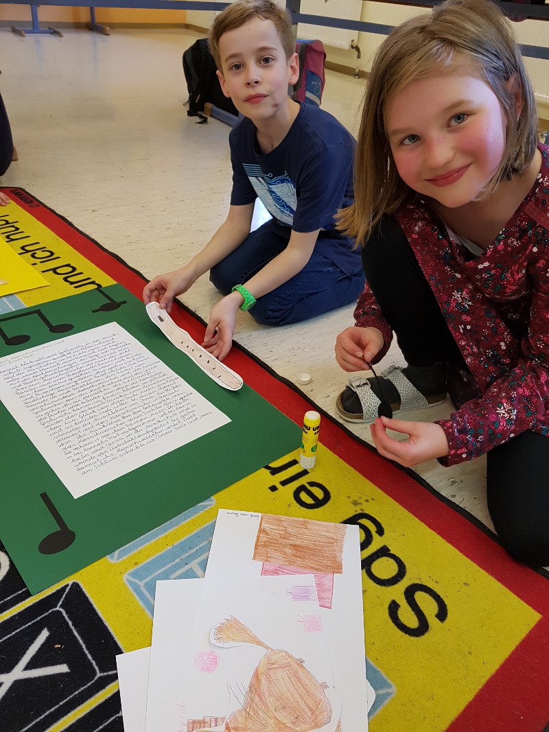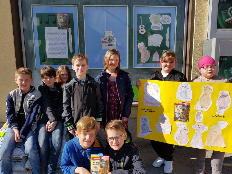 Wir Schüler/innen der 4. Schulstufe wählten gemeinsam mit unserer Lehrerin das Buch "Krimikids - Neun Meerschweinchen und ein fieser Fall" (Autorin: Etz Elisabeth) aus. Zuerst lasen wir den spannenden Krimi zum Teil in der Schule oder zu Hause. Anschließend überlegten wir uns die Gestaltung eines Leseschaufensters. Wir stellten die neun Meerschweinchen mit ihren Planetennamen grafisch dar. Danach widmeten wir uns der Musikschule von Herrn Herr und erstellten ein Plakat dazu. Den Inhalt erzählte eine Schülerin in einer wunderbaren Geschichte schriftlich nach. Wir waren sehr begeistert bei unserer Arbeit. Am Schluss brachten wir unsere Werke in das nahe gelegene Lebensmittelgeschäft, wo wir ein Schaufenster und im Inneren des Kaufhauses eine Wand gestalteten.- Projektleitung: