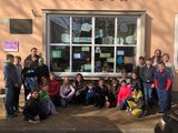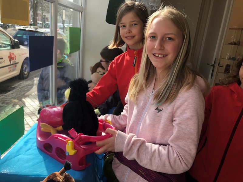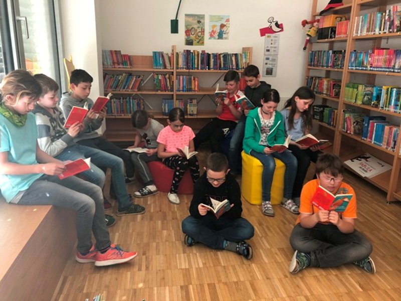 Nachdem die Kinder der vierten Klasse das Buch gelesen und sich intensiv damit auseinander gesetzt hatten, wurden Gruppen für die Gestaltung des Lese-Schaufensters gebildet. Die Teams wählten eine Fabel und gestalteten Schilder zur gewählten Geschichte, außerdem suchten sie"Schlüssel-Sätze" oder "Schlüssel-Passagen" Dann wurden die Textstellen im Computerraum getippt und ausgedruckt. Die Fabeln wollten wir szenisch darstellen, daher brachten die Kinder zu den Geschichten passende Stofftiere mit. Im großen Schaufenster des Frisörsalons konnten sogar die großen Kuscheltiere untergebrachten werden. Besonders toll finden wir, dass die Arbeit aus dem Klassenzimmer hinaus in die Öffentlichkeit getragen wird.- Projektleitung: