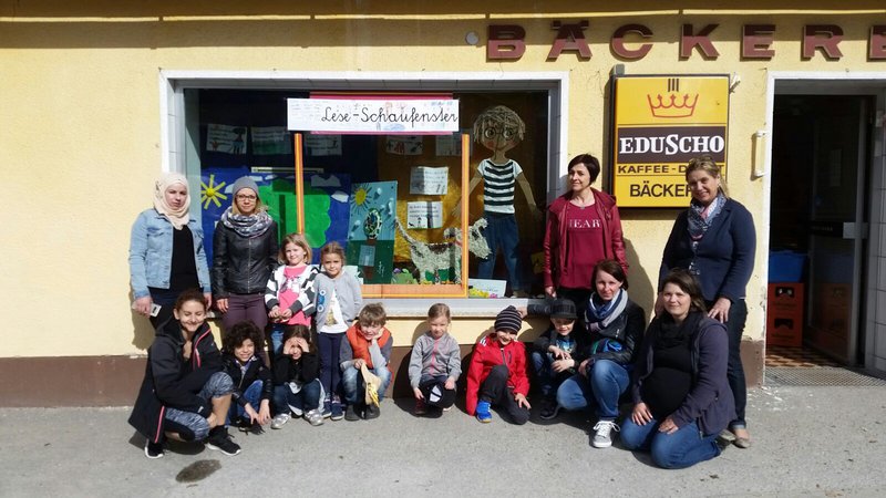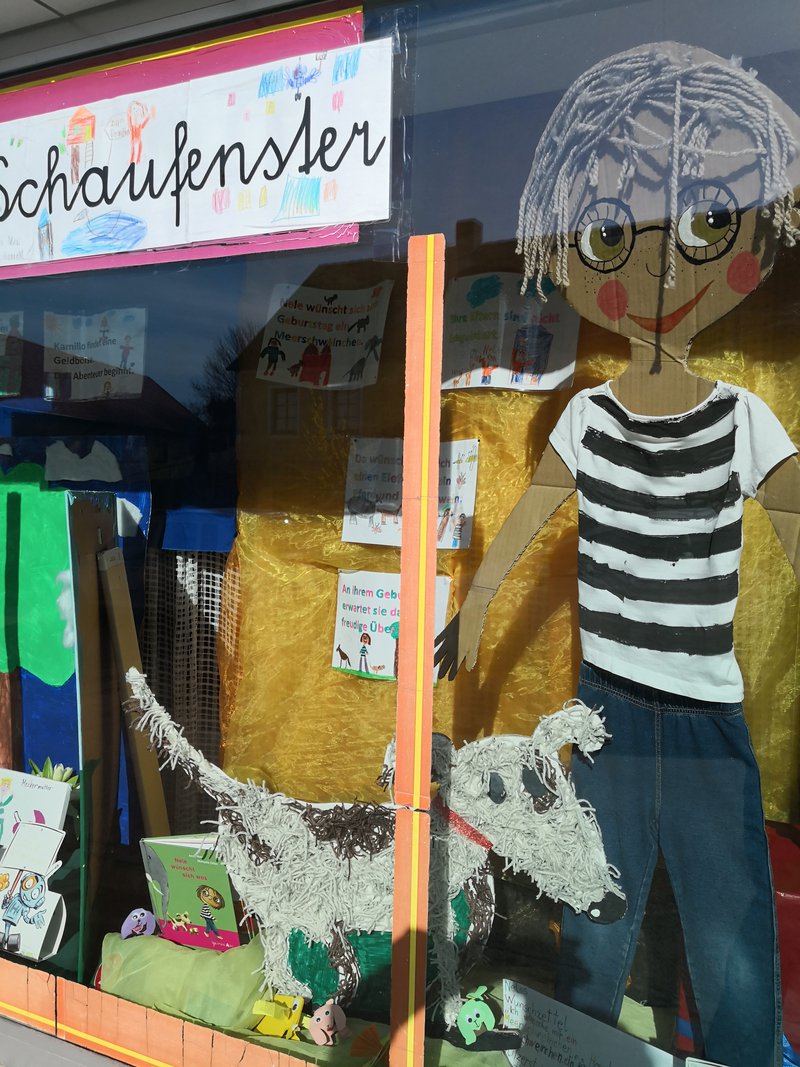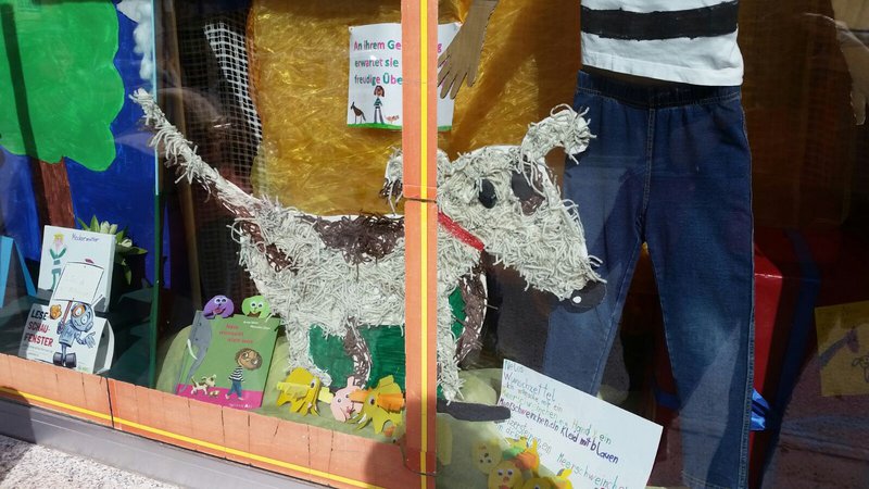 Die SchülerInnen der 1. Schulstufe der VS Hoheneich Selina Rosenstingl, Sandra Mikscha, Hanna Malli, Hanna Zwölfer, Paul Panagl, Saifeddin Al Khalaf, Felix Wallner, Finn Weißensteiner und Alexander Preisinger wählten das Buch aus, weil sie Tiere und Haustiere lieben. Sie lasen das Buch mit Begeisterung und schrieben und malten in der Schule einige Sätze zum Buch. Sie trafen einander auch am Nachmittag, um ihre Ideen umzusetzen. Die Mädchen machten eine wunderschöne Nele, während die Buben den tollen Hund bastelten. An einem Dienstagnachmittag gestalteten sie mit Hilfe einiger Mütter und ihrer Lehrerin das Lese - Schaufenster.