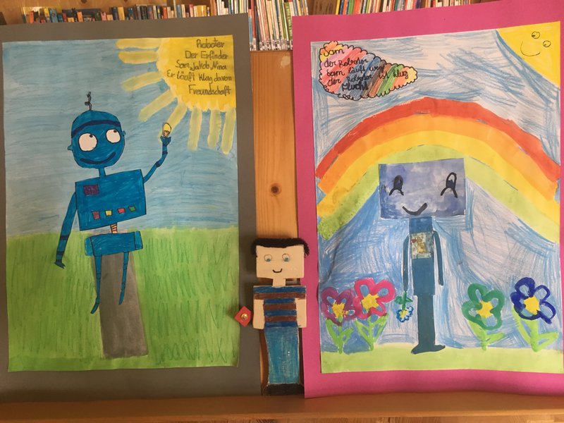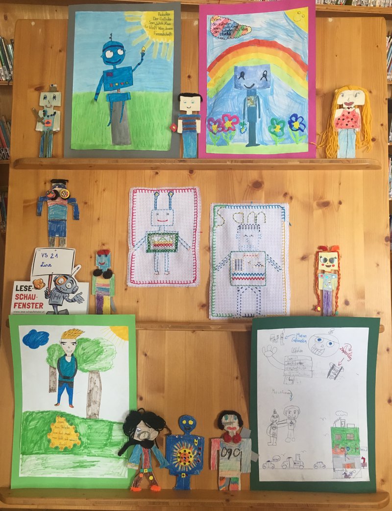 Wir haben zuerst das Buch im Klassenverband gemeinsam gelesen. Nach ungefähr einem Monat hatten wir das Abenteuer des Roboters SAM kennengelernt. Nun starteten die Kinder in Gruppen Ideen und Entwürfe für die Arbeit für das Leseschaufenster zu entwickeln. Danach wurde fächerübergreifend in den Gegenständen Werken, Bildnerische Erziehung und Deutsch gearbeitet. Die Gestaltung des Schaufensters machte allen großen Spaß. Es wurde gedichtet, gesägt, gestickt, gemalt und gebastelt. Kurz vor Ostern konnten wir schließlich stolz unser Schaufenster an der Schule eröffnen. Es war ein schönes Projekt!- Projektleitung: