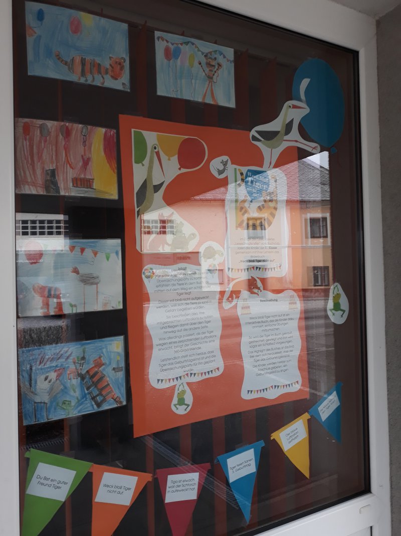 "Weck bloß Tiger nicht auf" ist ein interaktives Buch, das die Kinder der ersten Klasse dazu animierte, einfache Übungen mitzumachen. So wurde der Tiger im Buch gekrault, gestreichelt, gewiegt und ihm wurde sogar ein Schlaflied vorgesungen. Das Highlight des Buches war das End, bei dem sich herausstellte, dass der Tiger das Geburtstagskind ist. Die Kinder wurden hierbei zum Abschluss gebeten, ein Geburtstagslied zu singen. Im Zuge des Projektes wurde in der ersten Klasse fleißig gebastelt und gemalt. Auch Sätze zum Buch wurden bereits – zwar noch lautgetreu, aber sehr kreativ - verfasst.- Projektleitung:
