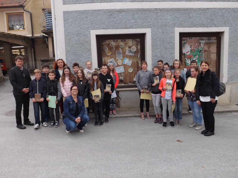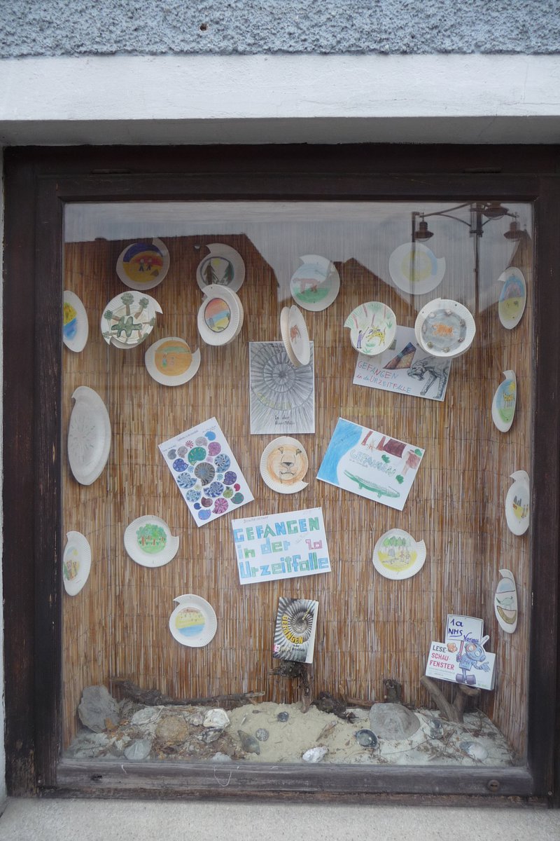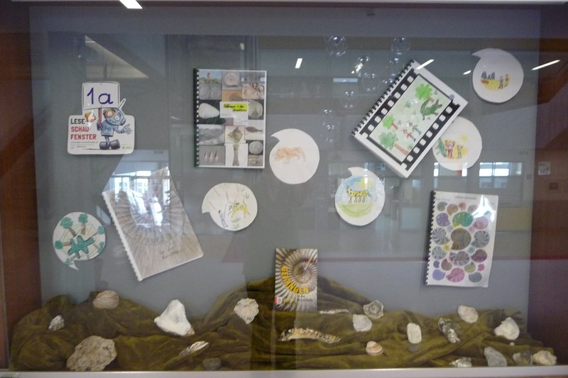 Das Buch zum Thema Urzeit und Fossilien war für uns sehr interessant und gleichzeitig sehr spannend, weil die Kinder wirklich aufregende Abenteuer erleben. In unseren Auslagen haben wir versucht, viele Szenen aus dem Buch darzustellen. Wir haben sehr darüber gefreut, dass viele Eltern, Verwandte und sogar der Herr Bürgermeister zur Eröffnung unseres Schaufensters gekommen sind.- Projektleitung: