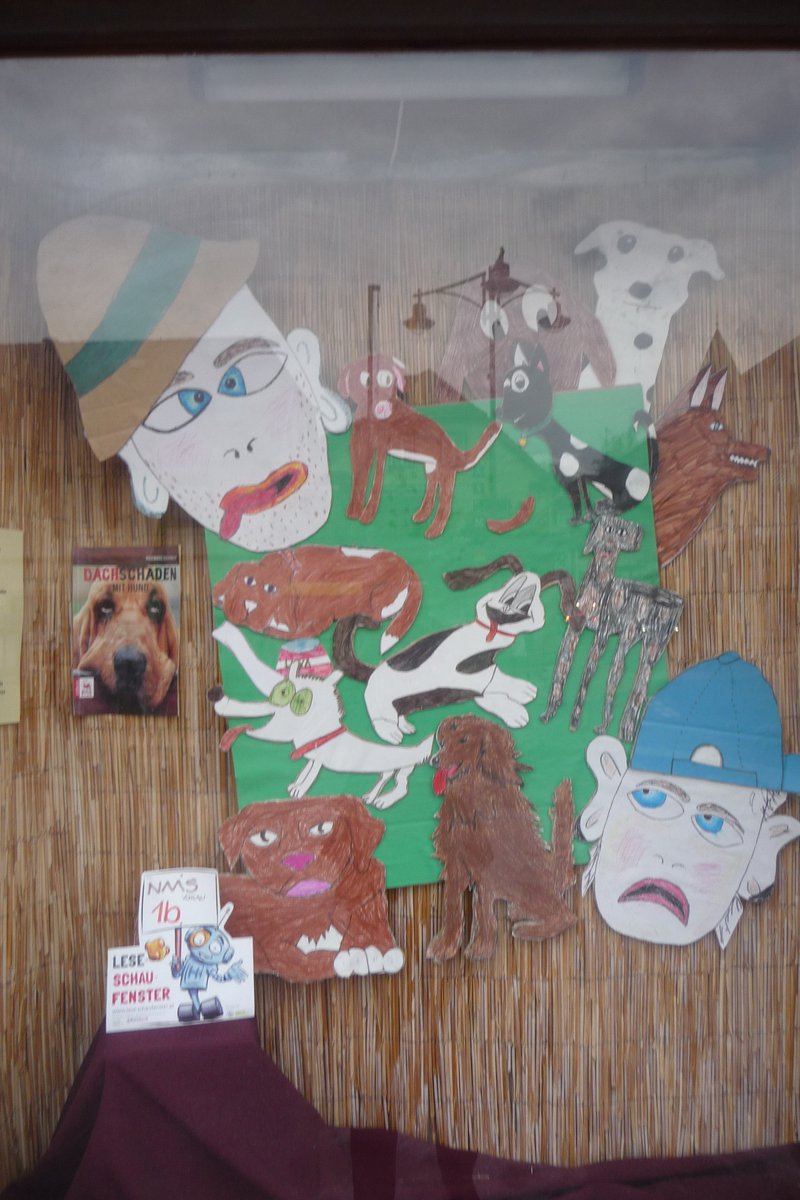 Mit Vergnügen haben wir die wirklich komischen Erlebnisse die Anton mit seinem verrückten Onkel Anatol erlebt hat. In der Auslage haben wir versucht, die beiden Hauptpersonen und viele Hunde, die in dem Buch vorkommen, darzustellen. Über die Teilnahme vieler Eltern und Verwandten sowie des Herrn Bürgermeisters und unserer Frau Direktor haben wir uns sehr gefreut!- Projektleitung: