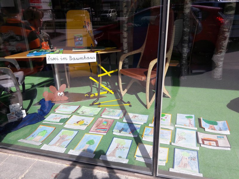 Das Buch wurde den Kindern im Unterricht vorgelesen und anschließend haben wir uns gemeinsam überlegt, wie wir das Buch für ein Schaufenster umsetzen könnten. So entstanden nun tolle Bilder und tolle Werkstücke von den Kindern.