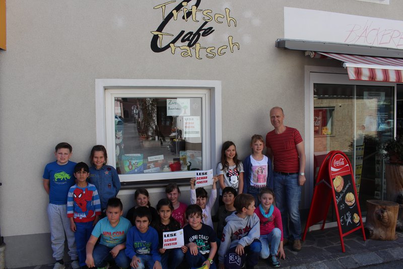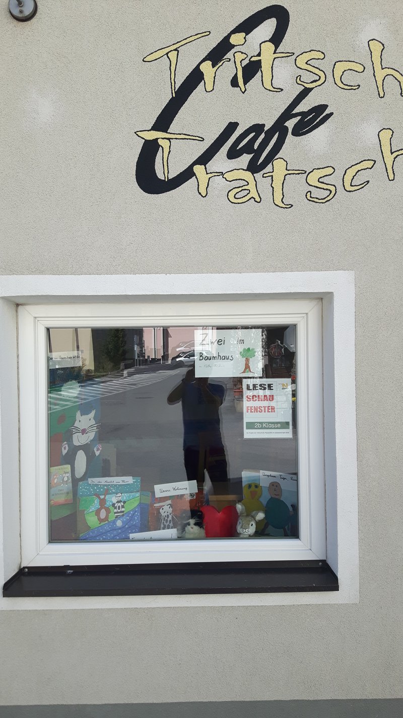 Am Postplatz - Ortszentrum von Nassereith, Schaufenster im Eingangsbereich zum Cafe´ Tritsch Tratsch