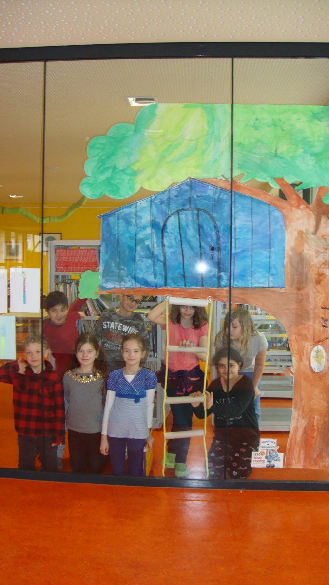 Abenteuer im Baumhaus Die Schüler der Klasse 2b der VS Ybbs unter der Klassenlehrerin Gilda Frühberger nahmen an der Aktion "Lese-Schaufenster" teil. Dabei wurde die Klassenlektüre "Abenteuer im Baumhaus" nicht nur gelesen, sondern auch inhaltlich zusammengefasst, hinterfragt und besprochen. Die Kinder haben einzelne Szenen zeichnerisch dargestellt und als Theaterstück nachgespielt. Höhepunkt war die Präsentation ihrer Kunstwerke, die in der Bibliothek der Volksschule Ybbs ausgestellt sind.- Projektleitung: