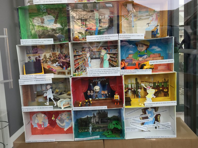 Prinzessin Grünerbse bekommt von ihren Eltern die Aufgabe, das Land zu regieren, weil sie es selber nicht können. Sie geht in die weite Welt, um zu erfahren, wie das Leben dort so funtioniert und schnuppert in einige Berufe, um zu erfahren, wie es den Menschen geht und was sie brauchen. Am Ende weiß sie zwar noch immer nicht, wie Regieren funktioniert, aber sie weiß, dass es viel zu tun gibt, damit es allen Menschen gut geht. Zu allen Kapiteln bzw. Szenen wurde von den Kindern eine Schuhschachtel gestaltet und ein wichtiger Satz dazugeschrieben, sodass am Ende 17 Schachteln den Inhalt des Buches erzählen. Die Auseinandersetzung mit dem Thema des Buches hat den Kindern Riesenspaß gemacht und viele interessante Gespräche initiiert. Die gesamte Klasse wäre begeistert, wenn sie erfahren könnte, wie es Prinzessin Grünerbse mit dem Regieren ergangen ist und wer ihr dabei geholfen hat.- Projektleitung: