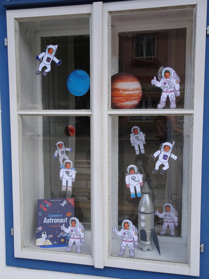 Faszination Weltraum! Angeregt durch die Lektüre stellten sich die Kinder der 3. Klasse die Frage: "Was wäre wenn... wir wirklich ins All reisen könnten, um die Planeten zu erforschen?" Unser Lesefenster gestattet uns einen Ausflug in die Unendlichkeit des Weltraums - ein Astronautentraining der anderen Art.