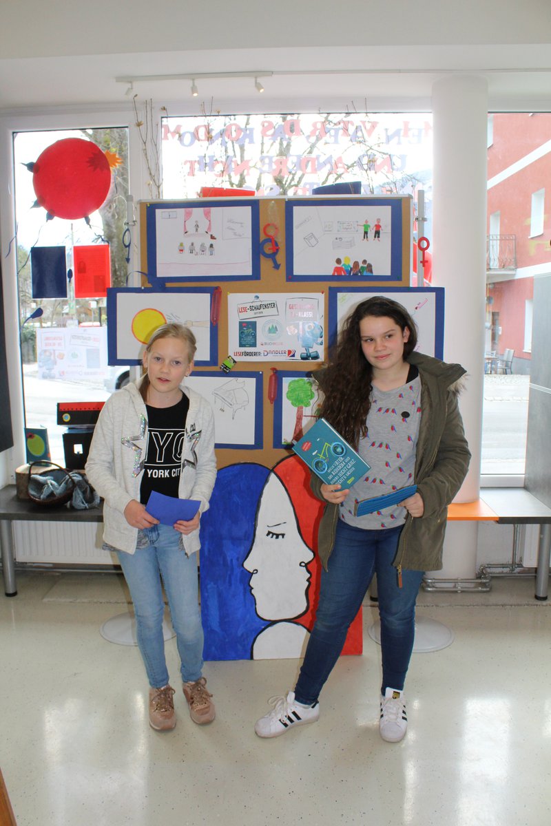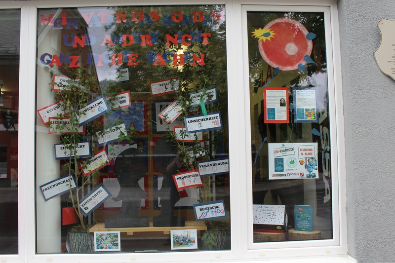 Kondome, Liebe, Pubertät,... mehr Informationen über das Buch "Mein Vater, das Kondom und andere nicht ganz dichte Sachen" brauchten die SchülerInnen nicht zu wissen und es war sofort klar, dass nur diese Lektüre in Frage käme. Mit großer Lesebegeisterung und kreativen Ideen widmeten wir uns im fächerübergreifenden Projektunterricht dem Leseschaufenster. Auch der Sexualerziehung wurde große Aufmerksamkeit geschenkt und von den Heranwachsenden dankend angenommen. Die zwei lebenden Bäume symbolisieren weiblich und männlich und stellen einerseits das Erwachen der Natur, andererseits auch die körperliche und geistige Entwicklung junger Menschen in der Adoleszenz dar. Die Kinder präsentierten stolz und aufgeregt den zahlreichen Gästen ihr Werk. Umrahmt wurde die Austellung auch noch mit musiklischen Stücken.- Projektleitung: