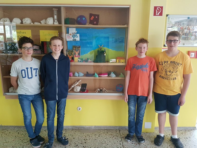 Leider haben wir unser Buch aus einer falschen Liste ausgewählt. Wir haben das Buch "die Nacht der Hulla" gelesen und fanden es sehr spannend. Nach der Buchpräsentation in Deutsch haben wir uns entschieden unser Lese-Schaufenster aus Lego zu bauen. Mit dem Lego wollen wir besonders die Jüngeren ansprechen. Es war kein leichtes Projekt, da der Berg immer wieder zusammenbrach und wir nicht genügend grüne Legosteine hatten. Wir beschlossen schließlich, ihn einfach mit Lack anzusprühen, ebenso wie den Hirsch. Eine Anleitung für einen Hirsch zu finden, war ebenfalls nicht so leicht. Schlussendlich ist uns das Projekt aber gut gelungen und wir können das Buch nur weiterempfehlen.- Projektleitung: