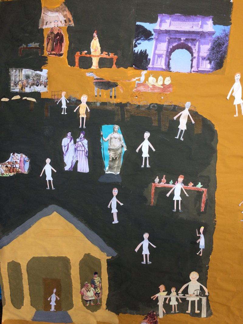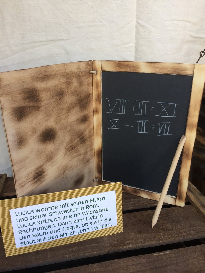 Die Entscheidung der Kinder der 4. Schulstufe fiel gleich auf dieses Buch. Sofort tauchten sie in die Welt der Römer ein. Sie bastelten eine Wachstafel, sammelten verschiedene Dekosachen, um einen römischen Marktstand nachzustellen und malten einen römischen Marktplatz als Hintergrund. Die vier Kinder verkleideten sich als Römer und spielten die Verfolgungsjagd aus dem Buch nach. Dabei entstand eine tolle Fotogeschichte. Das Thema ,,Römer" wird uns jetzt sicher noch einige Zeit begleiten.- Projektleitung: