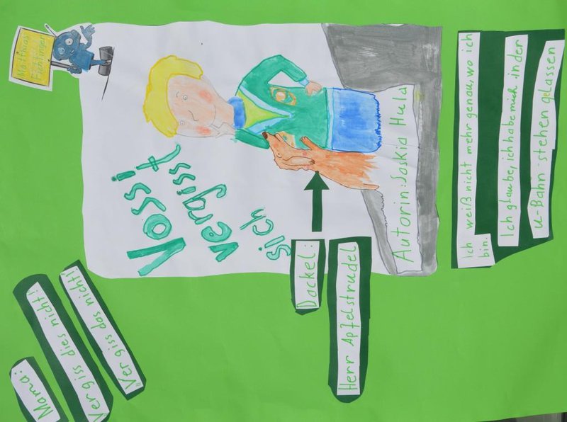 Warum soll sich Vossi vergessen? Wie kann sich Vossi vergessen? Und ein Hund der Herr Apfelstrudel heißt? Alle diese Fragen stellte sich Matthias aus der 4. Klasse Volksschule Bad Traunstein. Beim Lesen des Buches wurde einiges klar. Er würde das Buch auf alle Fälle weiterempfehlen. Das Gestalten des Leseschaufensters machte ihm großen Spaß.
