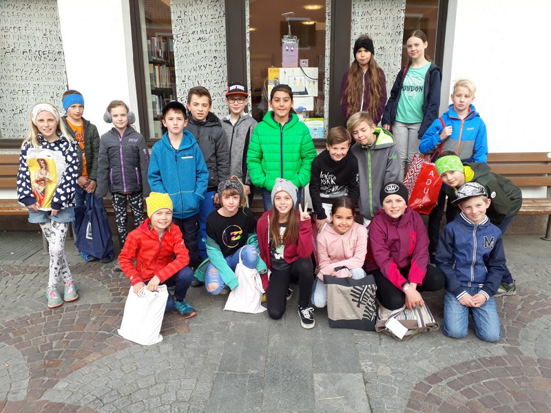 Die Einstiegsgeschichte "Lieblingsbuch" wurde allen Klassen vorgelesen. Sie bekamen den Auftrag das Leseschaufenster in den Osterferien im Ort zu finden. Die vierten Klassen setzten sich schon vorher im Werkunterricht intensiv mit Erfindungen auseinander und bastelten Roboter. Den größten Roboter stellten wir ins Leseschaufenster und verwendeten ihn sozusagen als Litfaßsäule für die kreativen Beiträge. Diese Werke entstanden in den Bücherei- bzw. Zeichenstunden. Da das Buch ganz unterschiedliche Interessensbereiche anspricht, durften sich die Kinder mit Doppelseiten ihrer Wahl intensiver beschäftigen. Zum Abschluss lösten die Kinder in Partnerarbeit in einer Rallye die Glühbirnen-Rätsel und die Bilder-Rätsel aus dem Buch, sodass sich alle auch mit den anderen Themenbereichen beschäftigten. Sicherlich haben sich schon einige Kinder die Idee zu ihrer Erfindung, wie im Buch vorgeschlagen, mit der Post selbst zugeschickt, um einen Beweis zu haben, dass sie Urheber dieser Erfindung sind.