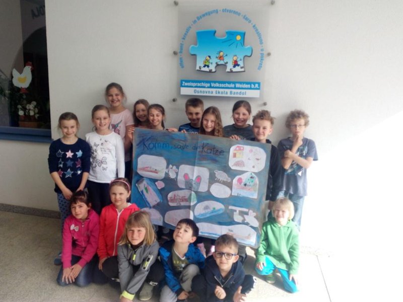 Die Schüler besuchten den Kindergarten und stellten das Buch "Komm, sagte die Katze" von Mira Lobe vor. Dafür hatten sie ein Lesetheater mit verteilten Rollen einstudiert . Die Bilder wurden mittels Beamer an die Wand projiziert und der Text auch durch Gebärdensprache unterstützt. Im Anschluss wurde das Plakat von den Kindergartenkindern und von den Schülern gestaltet. Mit viel Freude blätterten die Kindergartenkinder noch lange im Buch und betrachteten ganz genau die abgebildeten Tiere. Auch sie haben wir in unser "Leseboot" geholt!- Projektleitung: