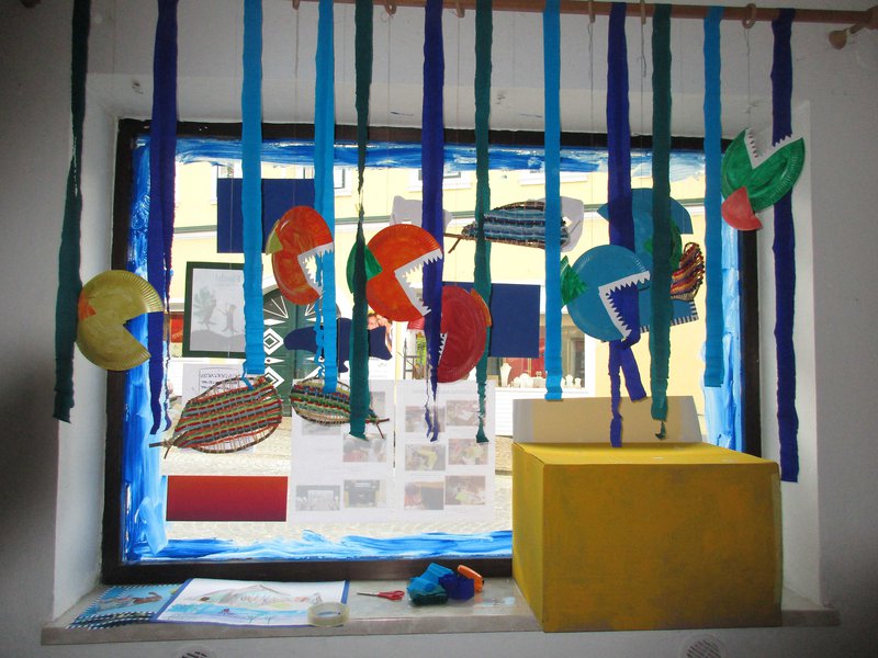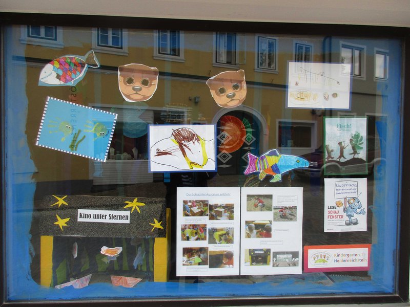 Das Buch "Fisch!" von Linda Wolfsgruber war auf Anhieb der Favorit im Kindergarten. Unter der Projektleitung von Katrin Wandl-Gedlicka würde das Buch nicht nur zum Lese-Schaufenster Projekt sondern auch zum Kindergartenprojekt. Das Bilderbuch wurde mit allen Sinnen erlebt. Es wurde lebendig gemacht durch sehen, (be)greifen und ausprobieren. Es wurde ein Schachtel Aquarium gebastelt, gezeichnet, gemalt, geklebt und gewebt. Es wird auch noch einen Kindergartenausflug ins Unterwasserreich geben, um die echten Fischotter und alles drum herum noch weiter zu erforschen. Die Kinder hatten große Freude am Lese-Schaufenster Projekt "Fisch!"- Projektleitung: