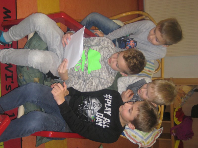Beim Lesefrühstück im Advent suchten die Schülerinnen und Schülr der 3. und 4. Schulstufe für die Kleinen Geschichten aus diesem Buch aus und lasen sie gemeinsam mit ihnen. Die Geschichte "Das Weihnachtsgeschenk" war sehr passend, da das zuerst unbeliebte Büchergeschenk nach einem Skibobunfall mit Beinbruch zum wahren Glücksfall wird. Die Kinder verstanden den Inhalt der Geschichte: "Bücher sind doch die besten Freunde". Eifrig gestalteten sie ihr Plakat für das Leseschaufenster.- Projektleitung: