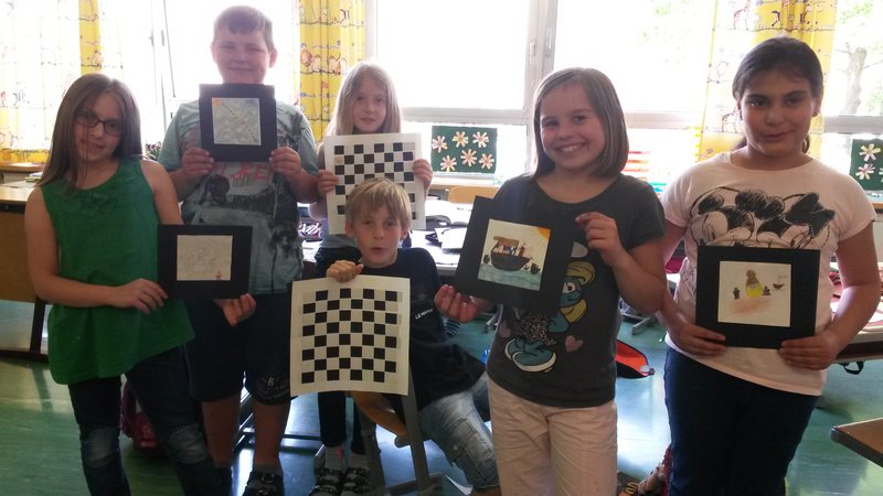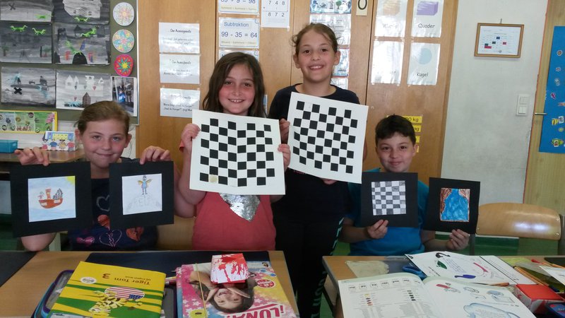 Schach - das war sofort klar - war das Thema, zu dem wir arbeiten wollten. Da in unserer Klasse viele schachbegeisterte Kinder sind, wollten wir wissen, war dieses Spiel eigentlich erfunden hat. Mit großen Ohren lauschten die Schüler beim Vorlesen der Geschichte über einen Weisen, der für den Kaiser dieses Spiel erfand, und warum er damit den Reisbauern half. Sie versuchten sich auch beim Rechnen und Vorstellen einer riesengroßer Anzahl von Reiskörnern. Weiters wurde Papier gewebt, gefaltet, gezeichnet und gemalt. Stolz wurden die etwas anderen Schachfiguren in der Auslage präsentiert.