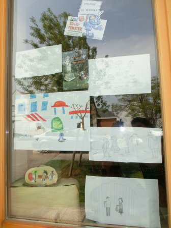 Auch die Schüler und Schülerinnen der 4. Schulstufe gestalteten im Rahmen des Leseunterrichts ihr eigenes Lesefenster. Das Buch "Ein Denkmal für Frau Hasenohr" wurde zu Hause gelesen und danach wurde in der Schule am Lesefenster gearbeitet, bis es voller Stolz im April eröffnet wurde.- Projektleitung:
