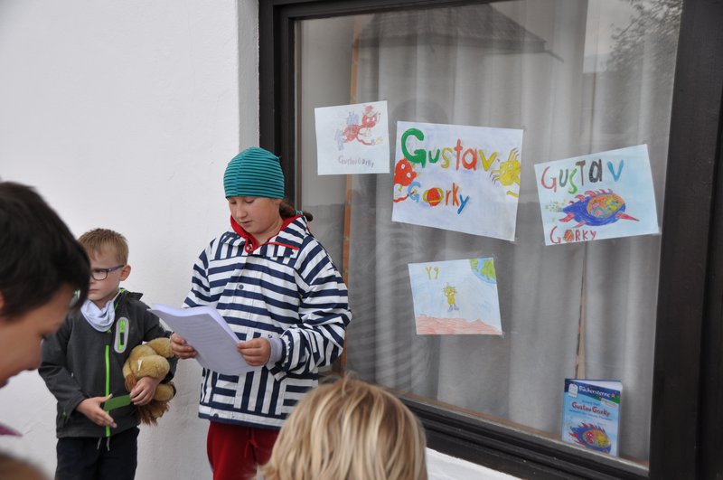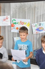 4 Kinder haben sich das Buch "Gustav Gorky" ausgesucht und es mit lachenden Gesichtern gelesen. Die Erlebnisse von Gustav zaubern allen ein Lächeln ins Gesicht. Nach dem gemeinsamen Lesen fingen die Kinder gleich an zu basteln und zeichnen. So entstanden schöne Bilder und ein Raumschiff aus Pappmaché.- Projektleitung: