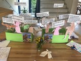 Die erste Klasse las das Buch "Schönen Gruß vom Hasenfuß" und bastelten lustige Stabpuppen.- Projektleitung: