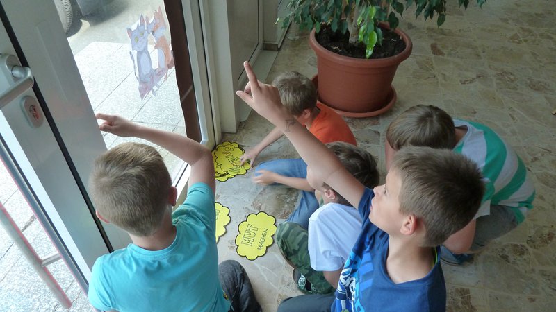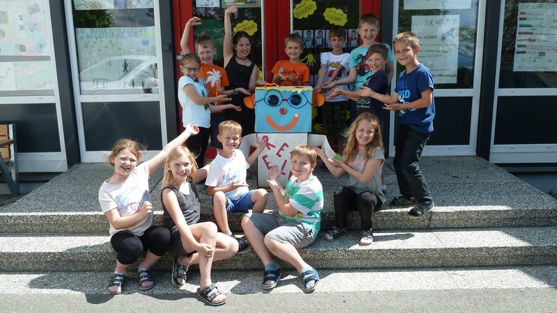 Unser selbst gebastelter Hiro lebt nun schon seit einigen Jahren an unserer Schule und versorgt uns immer wieder mit neuen, spannenden Büchern. Außerdem animiert er uns stets zum Lesen und lauscht gespannt, wenn wir ihm vom Gelesenen berichten. Nach zahlreichen Leseprojekten war es daher sonnenklar, auch beim Leseschaufenster mitzumachen. Das Thema Freundschaft, das im Buch "Zwei im Baumhaus" angesprochen wird, liegt den Kindern sehr am Herzen. Wir haben uns gefragt, was Freundschaft überhaupt bedeutet. Diese Gedanken haben wir im Leseschaufenster festgehalten. Selbstverständlich dürfen Kaninchen und Hase dabei auch nicht fehlen. Eifrig wurde geschrieben, gemalt, geklebt und gestaltet. Auch in den Unterrichtsgegenständen Musik, Bildnerische Erziehung und Englisch wurde das Thema Freundschaft bearbeitet.- Projektleitung: