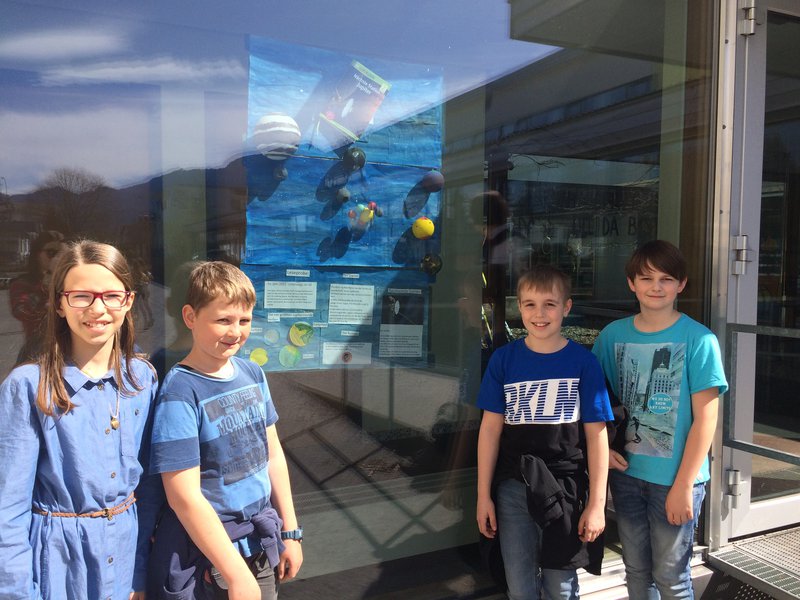 Wir haben uns in den letzten Wochen sehr intensiv mit unseren Leseschaufenstern auseinandergesetzt. Wir teilten unsere Klasse in fünf Gruppen, die alle mit einem anderen Buch gearbeitet haben. In diesen Büchern ging es meist um Wissen aus den verschiedensten Bereichen. Jeder Einzelne hat sich sehr angestrengt, um mit seiner Gruppe dieses Projekt fertig zu bekommen. Wir finden, dass unsere Schaufenster sehr schön geworden sind.