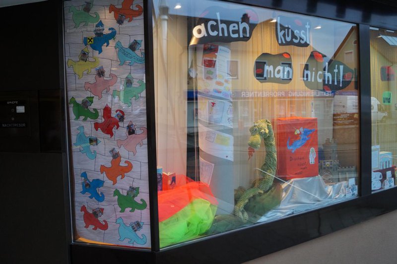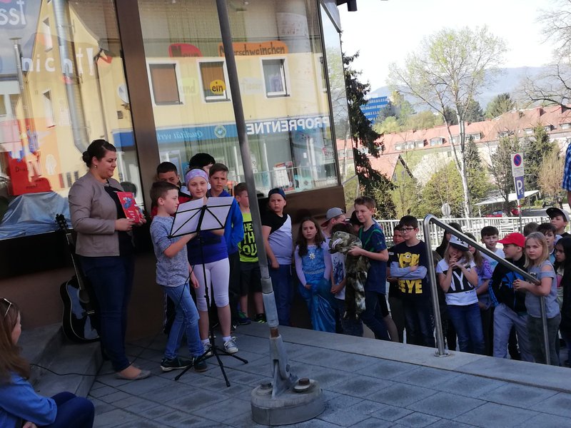 Passend am Welttag des Buches (23.4.18) wurde von der 4a Klasse der VS Zeltweg das Leseschaufenster bei der Raiffeisenbank Aichfeld enthüllt. Mit einer kurzen Geschichte und einen Lied umrahmten die Kinder die Präsentation.- Projektleitung: