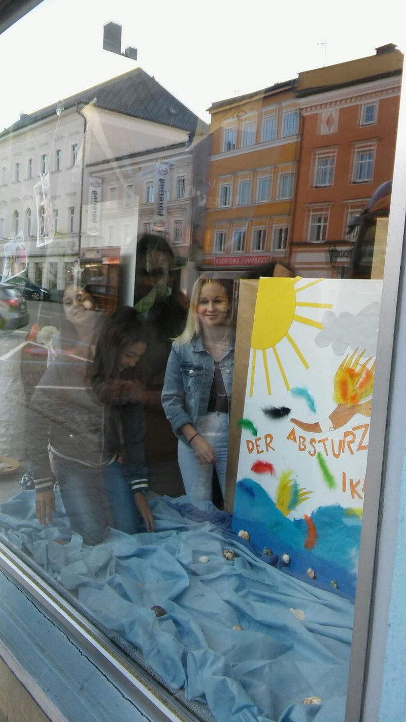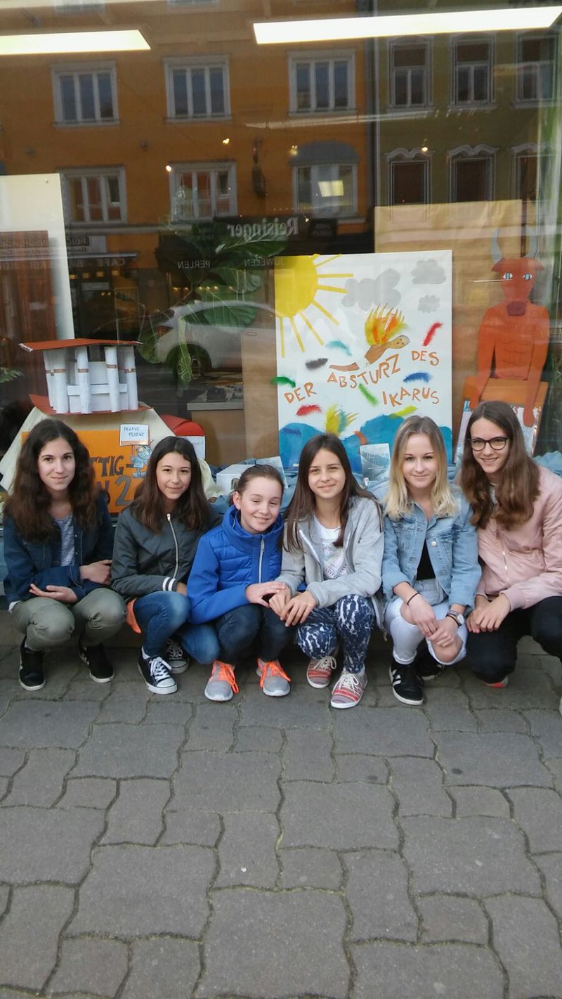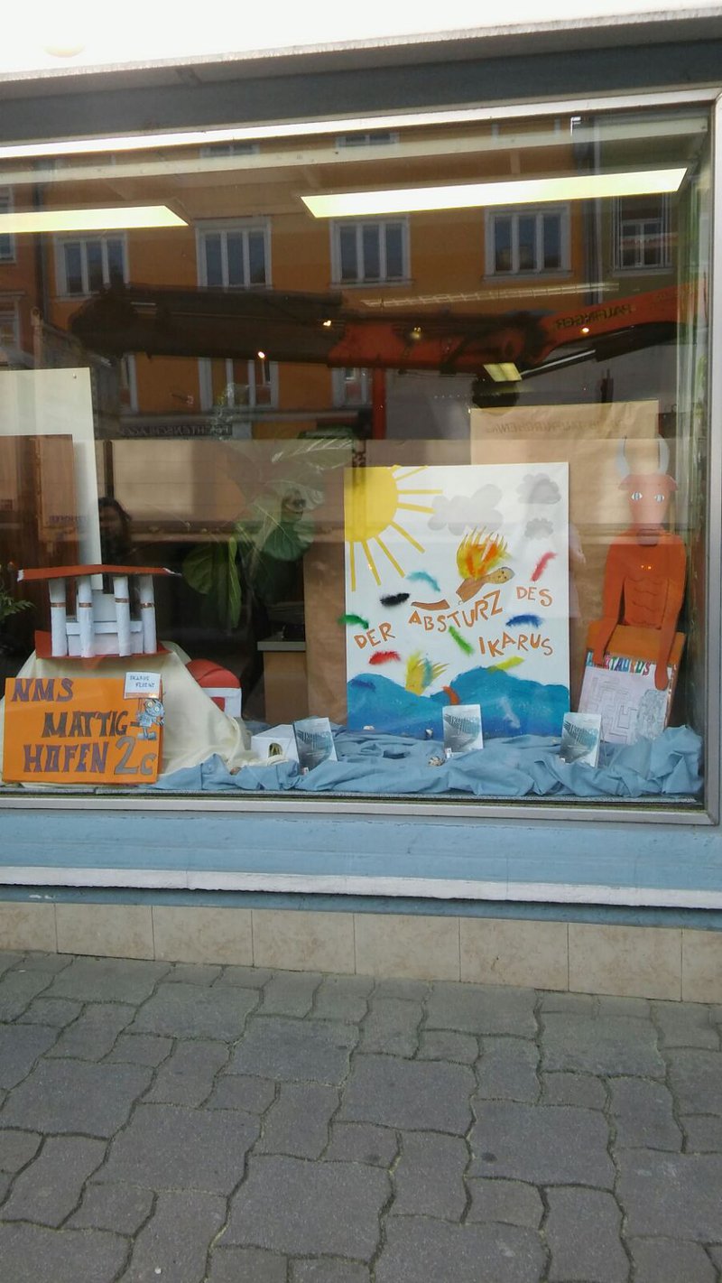 Rechts: Minotaurus Links: Akropolis mit Tempel Mitte: Keilrahmen mit dem Absturz des Ikarus Vorne: Das ikarische Meer- Projektleitung: