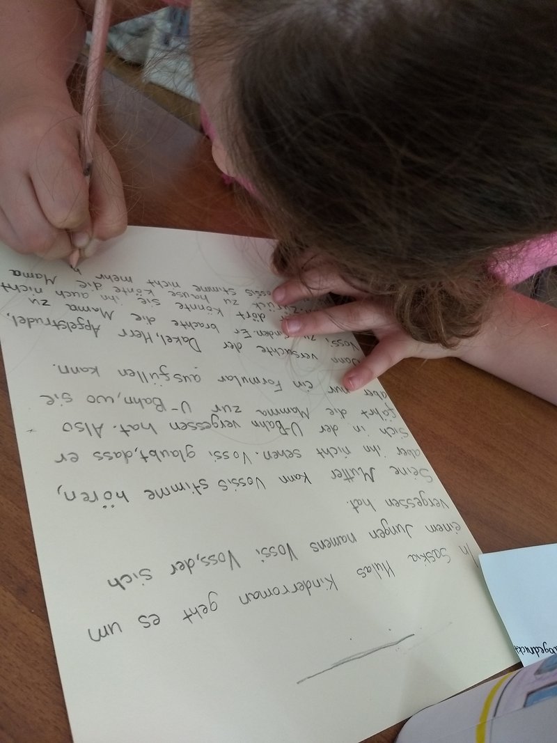 Im Rahmen des Fremdsprachenunterrichts hat sich die Deutschklasse der 4/5er Kombi dem Buch "Vossi vergisst sich" gewidmet. Sie waren voller Eifer dabei, haben sich souverän durch den Kinderroman gearbeitet und viel Engagement beim Erstellen der Leserollen gezeigt. Es war toll zu sehen, wie die Rollen gewachsen sind und als alles geschafft war, war die Freude sehr groß. Die Kinder konnten ihre kreative Ader zeigen und auch, wie sie sich in den letzten Jahren akademisch entwickelt haben. Sie haben sich mit verschiedenen Textsorten befasst, neue Wörter und Ausdrücke kennengelernt und auch das eine oder andere Grammatikthema wiederholt. Dieses Projekt war eine fantastische Möglichkeit, sich mit der deutschen Sprache zu beschäftigen und alle haben gemeinsam auf ein Ziel hingearbeitet - und das in nur je 4 Wochenstunden. Auch für mich als Lehrerin war es eine tolle Erfahrung, die ich nächstes Jahr sehr gerne wieder machen würde!