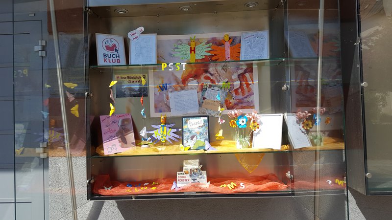 Im Rahmen der diesjährigen Buchklubaktion "Leseschaufenster" gestalteten einige Schülerinnen der 3ab Klasse und 4a wiederum eine Auslage im Orban Museum in Gamlitz. Die beiden Mädchen der 3b Klasse wurden dabei von den beiden Integrationsschülern und deren Betreuerinnen sowie einer Schülerin der 4a Klasse unterstützt. Diese fertigten Zeichnungen und Bastelarbeiten an. Gemeinsam wurde dann das Schaufenster gestaltet. Die Ausstellung ist für die örtliche Bevölkerung und für die zahlreichen Touristen noch zu bewundern.- Projektleitung: