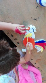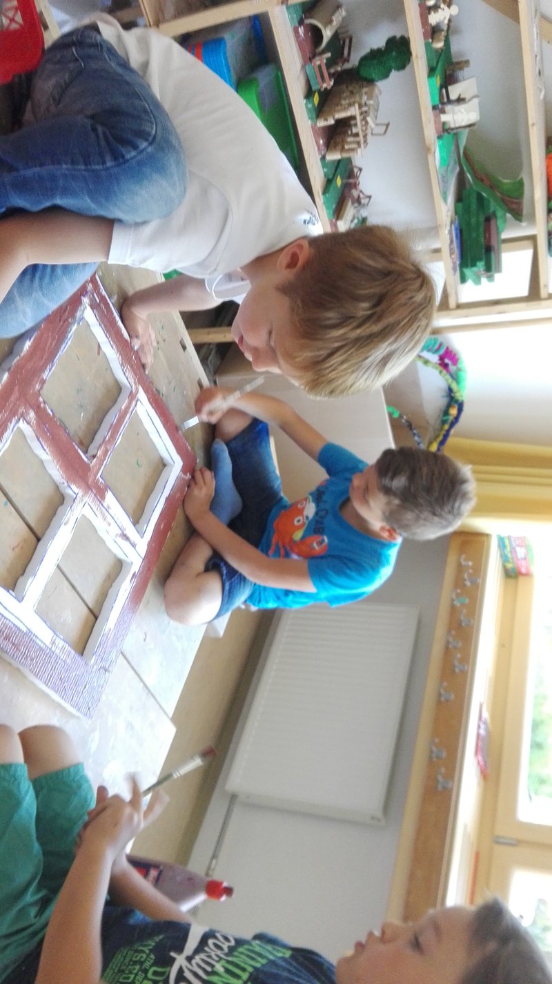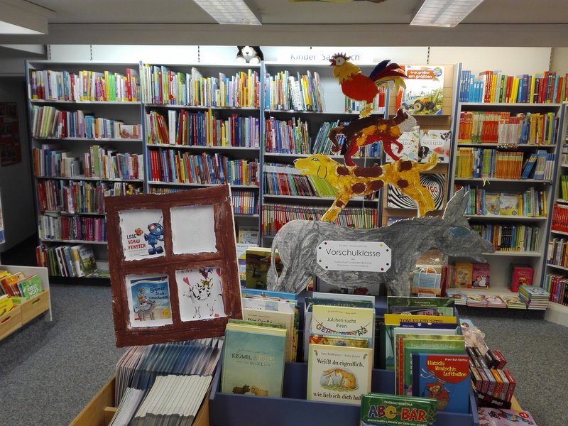 Wir haben das Buch gelesen, gespielt,gezeichnet, Klanggeschichten damit gestaltet und Tierlieder zum Besten gegeben. Im Turnunterricht stelle sich die Frage, warum wohl das stärkste Tier unten stehen sollte. Sehr fraglich für die Ohren war unser frei gespieltes lautstarkes Theaterstück. In die Auslage schafften es große Tierfiguren und das Bild mit dem Hahn im der unteren Etage. Das Zusammenstellen machte großen Spaß.- Projektleitung: