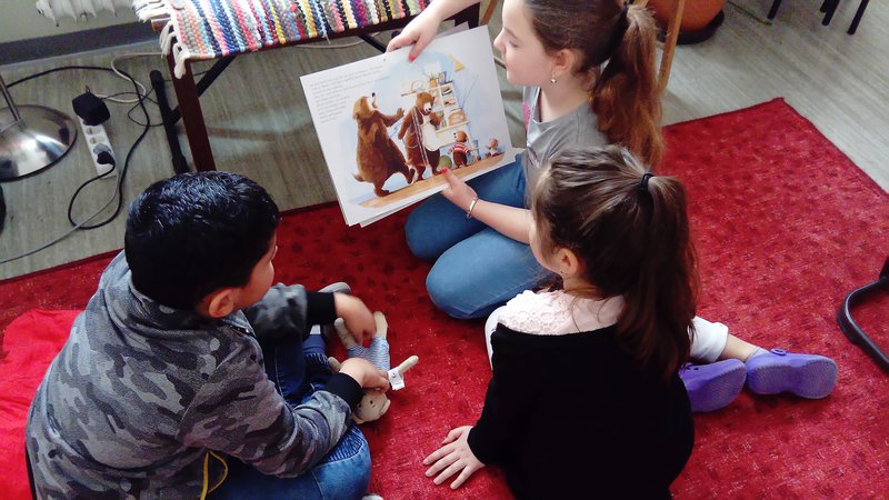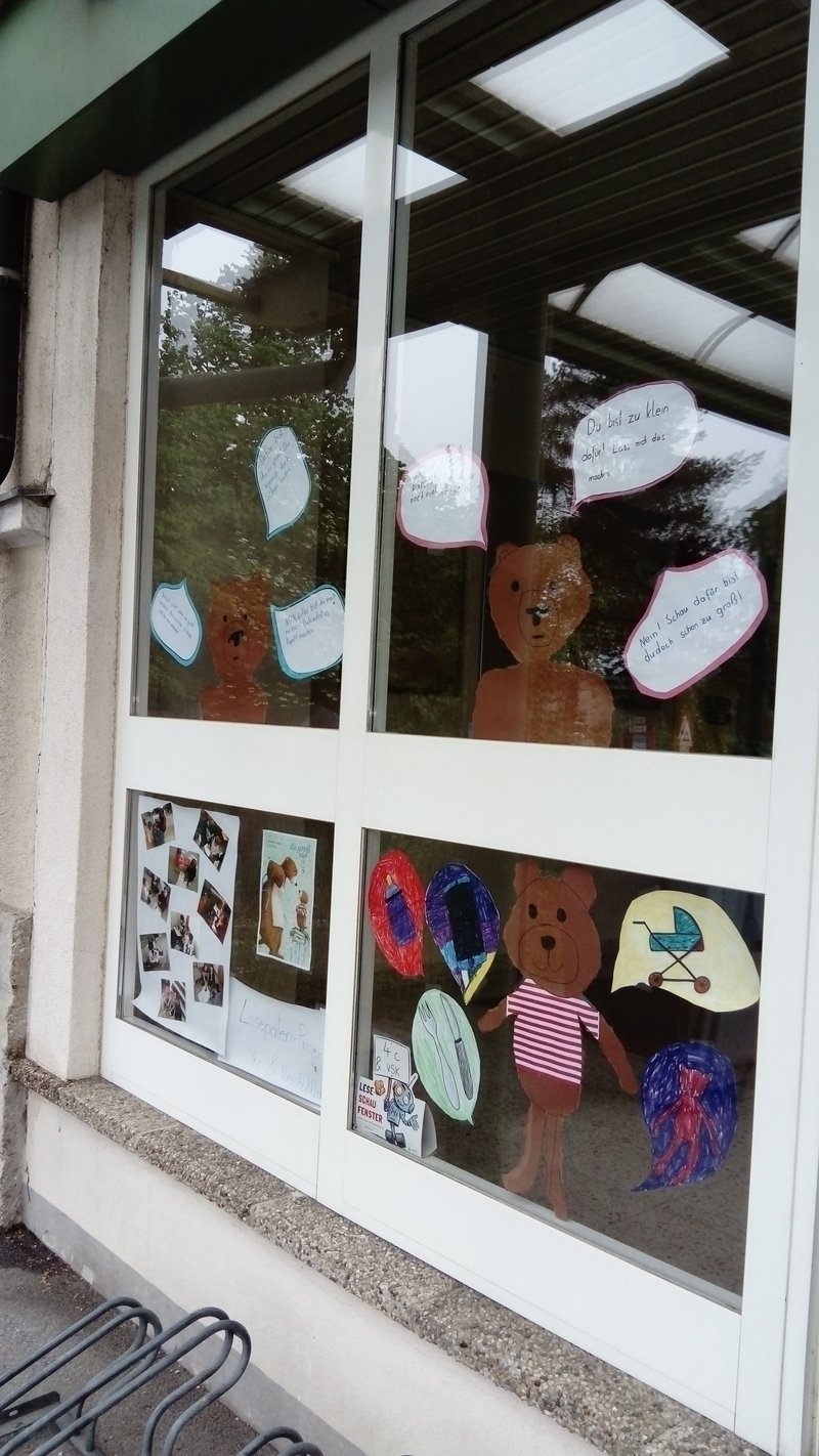 Im Rahmen eines Lesepaten Projektes, bei dem die Schüler und Schülerinnen den Vorschüler vorlesen, wurde das Buch gemeinsam gelesen und im Anschluss daran wurde das Leseschaufenster gestaltet.- Projektleitung: