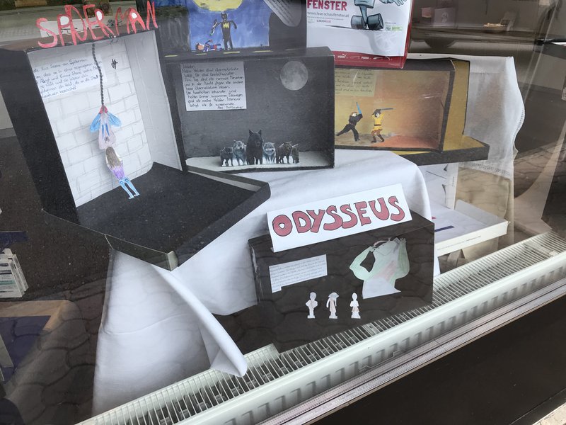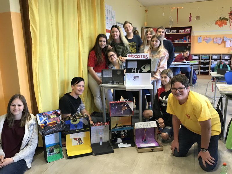 Die Schüler und Schülerinnen der 4a gestalteten in Anlehnung an das Superheldenbuch von Odysseus bis Lara Croft Schuchschachteln. Bei der Gestaltung konnten auch persönliche Vorlieben in das Projekt einfließen. Kurze Inhaltsangaben, die an die Schachteln geklebt wurden, rundeten die Kreationen ab.- Projektleitung: