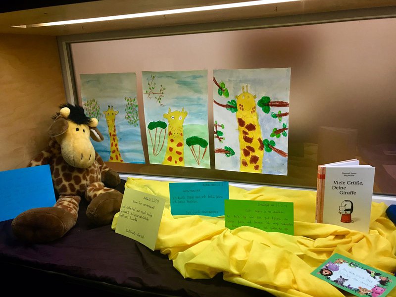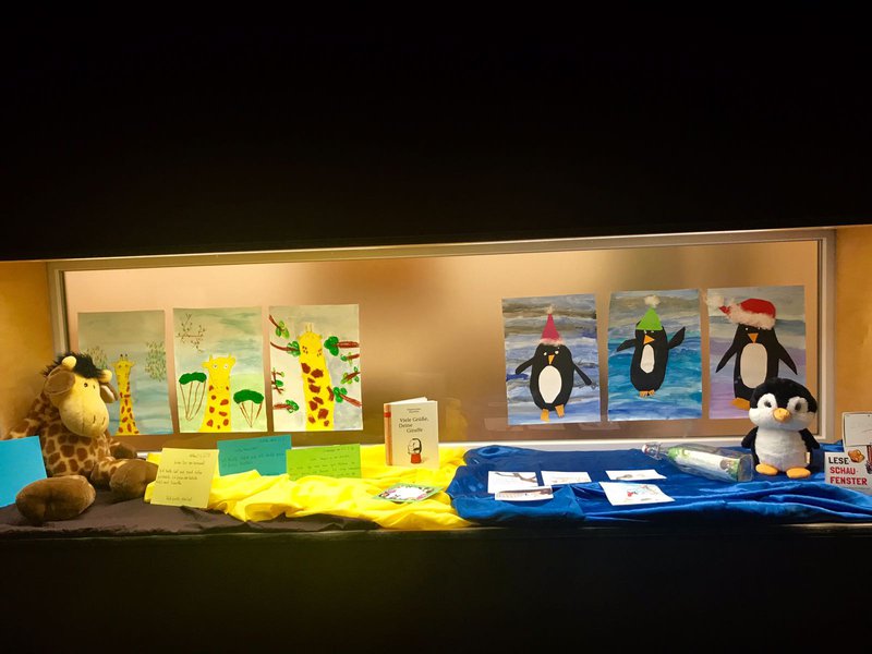 Die 2. Klasse der Volksschule Mellau gestaltete den Schaukasten der Öffentlichen Bibliothek mit dem Buch „Viele Grüße, deine Giraffe“. Das Buch vom Autor Megumi Iwasa wurde den Kindern im Unterricht vorgelesen. Begeistert hörten sie zu und brachten ihre Kuscheltiere von zu Hause mit. Im Deutschunterricht schrieben sie Briefe an andere Tiere und machten sich Gedanken über eine Flaschenpost. Auch im Zeichenunterricht beschäftigten sich die Schüler mit dem Buch und es entstanden tolle Kunstwerke.- Projektleitung:
