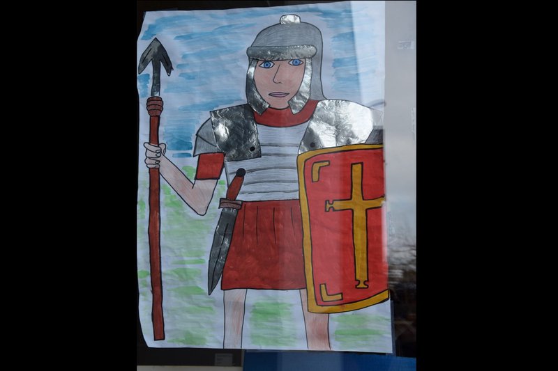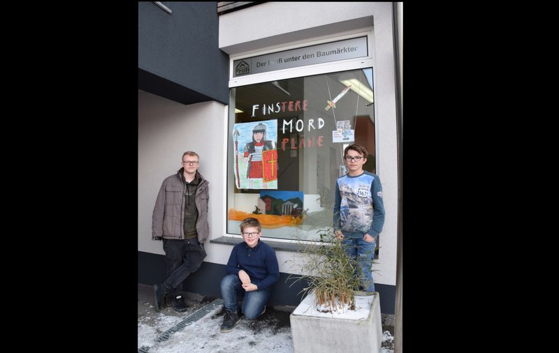 Der Titel "Mord in Carnuntum" weckte in uns die Neugier. Mit einem großen Bild eines römischen Soldaten und dem Mord Ort, einem nachgebauten Wald, versuchen wir die Besucher zu begeistern. Unterstützt wurden wir bei der Schaufenstergestaltung von einem Mitarbeiter der Firma Kriechbaum. Danke, Thomas!- Projektleitung:
